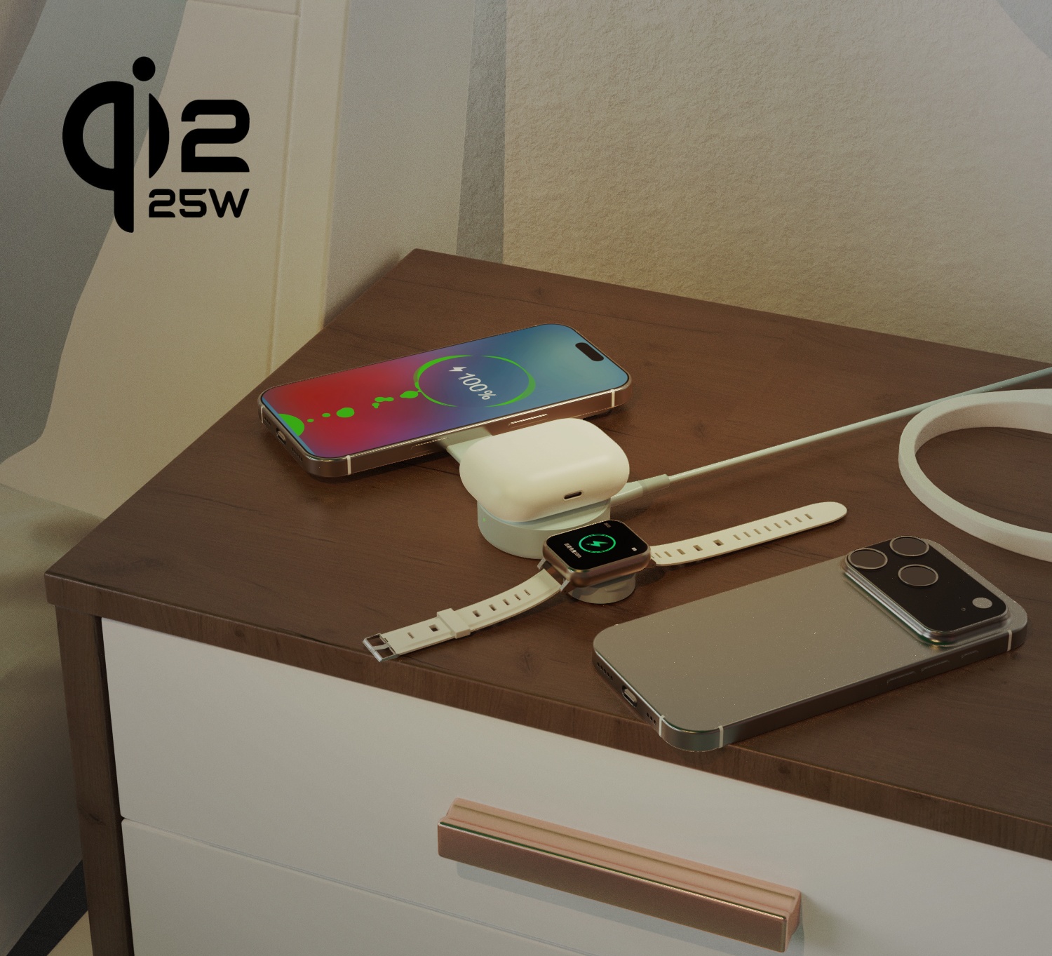 MQ31 Portable 25W 3 in 1 Qi2.2 Wireless Charger Dock for iphone 17 Pro